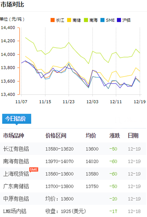 鋁錠價(jià)格今日鋁價(jià)2018-12-19