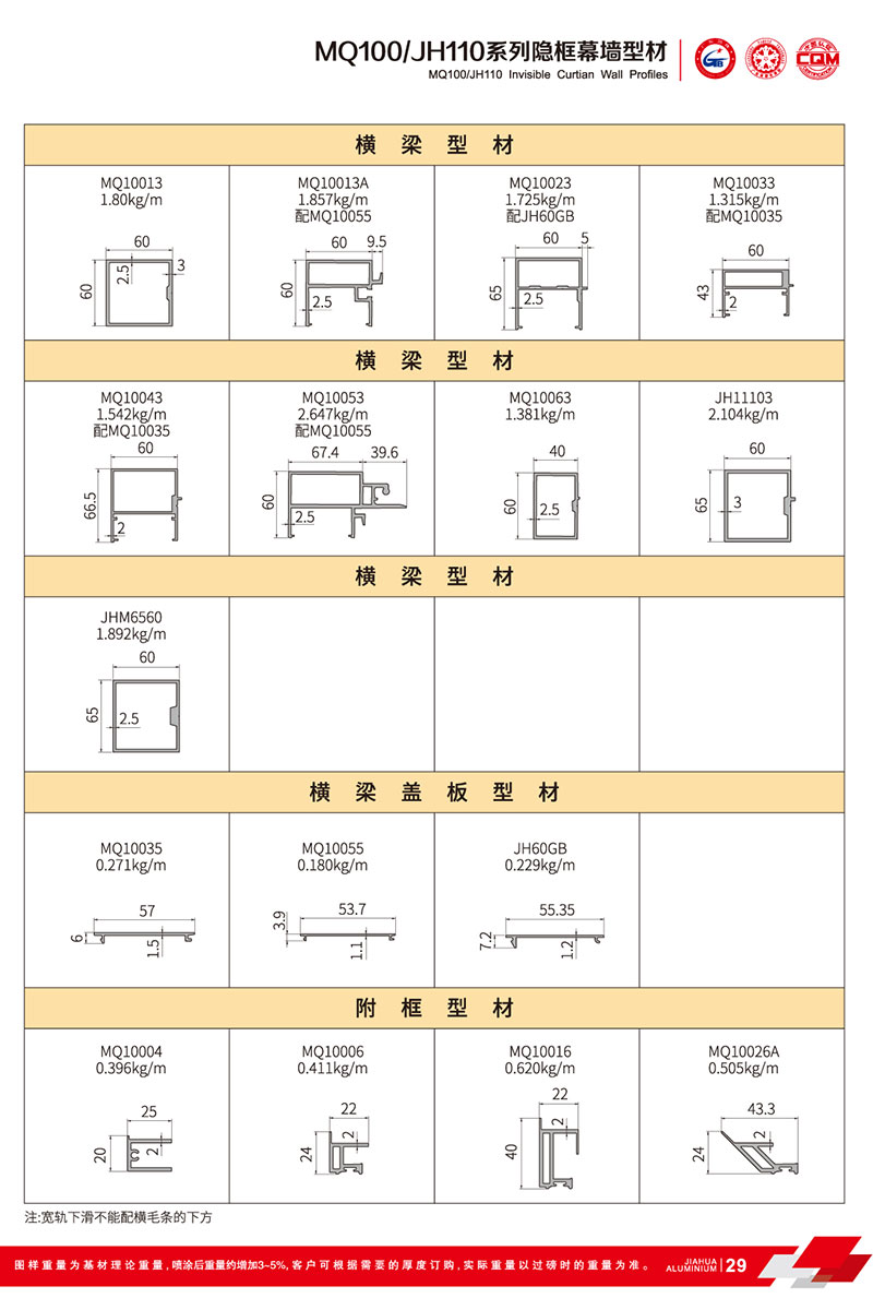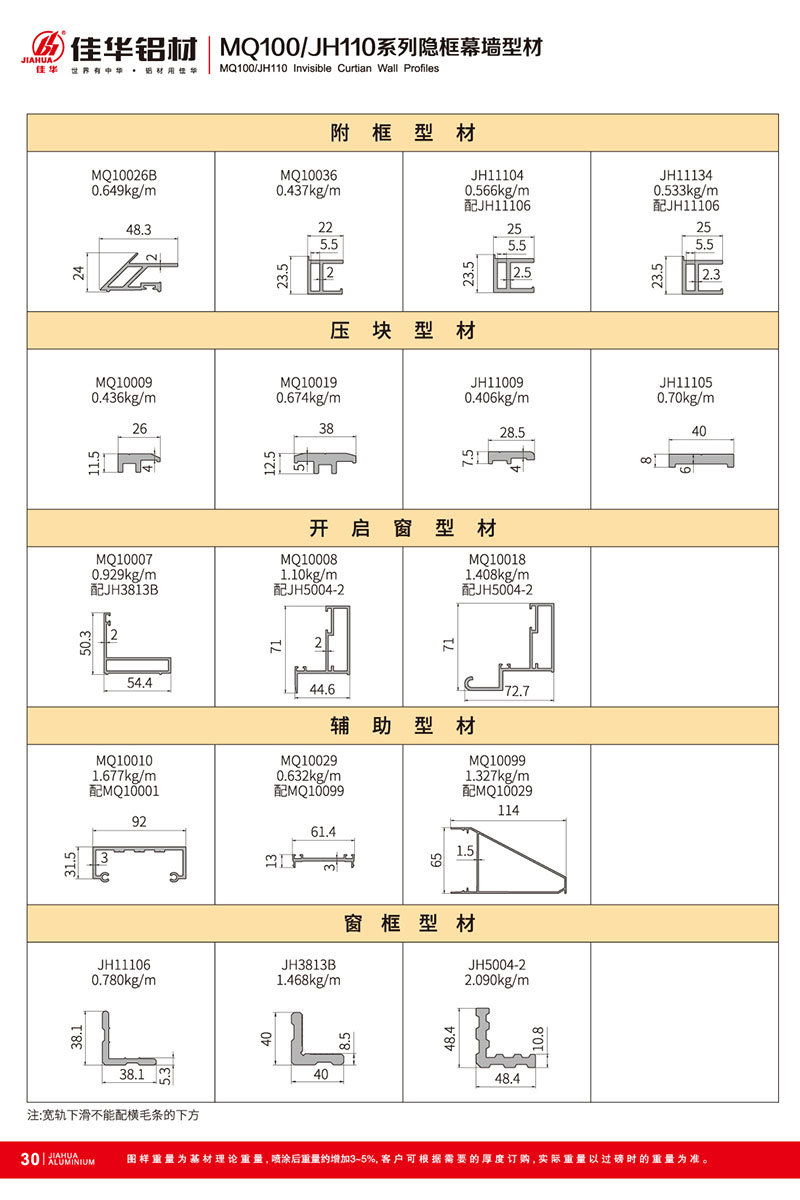 鋁型材規(guī)格型號:MQ100/JH110 A