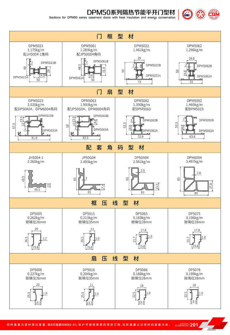 鋁型材規(guī)格型號:DPM50平開系列